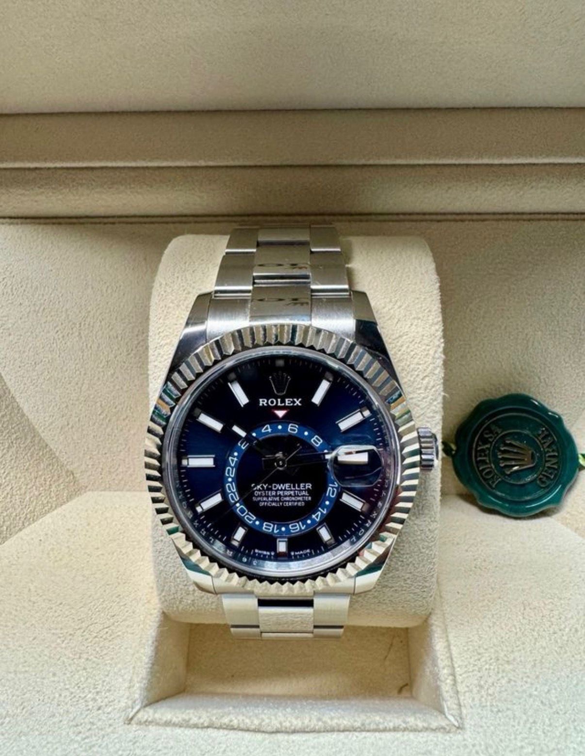 Precioso reloj Rolex Sky-Dweller 326934 en acero inoxidable. Se encuentra en excelentes condiciones.